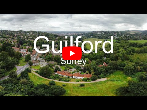 Flying over Guilford in Surrey, England - Relaxing Music With Beautiful Nature view map location