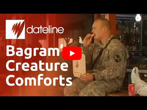 Keywords: SBS,Dateline,documentary,international film,journalism,reporting,War,unrest,lifestyle,Afghanistan,Bagram,soldier,American,comfort,burger king,middle east,pizza hut,air base,standard of living,warzone,shopping,fast food