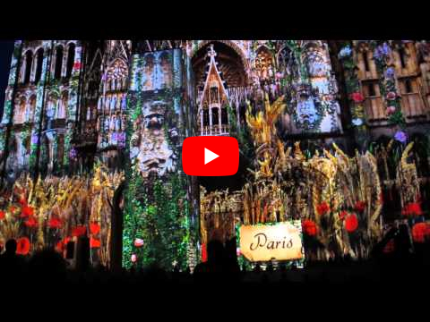 Laser Light Show on Notre Dame Cathedral, Rouen, France view map location