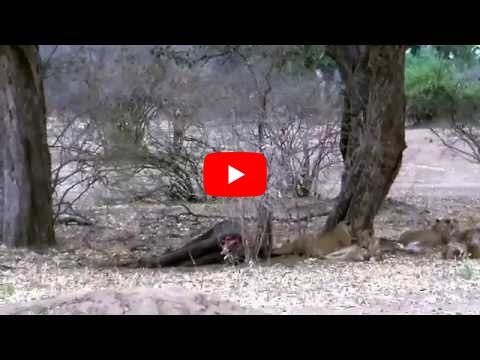 Lions kill elephant at Mana Pools National Park, Zimbabwe. October 2013. The morning after the kill. view map location