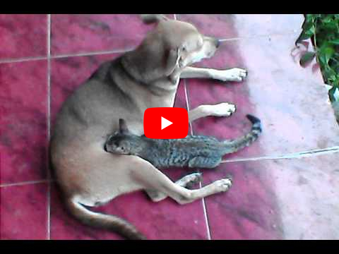 Dog is feeding milk to a cat view map location