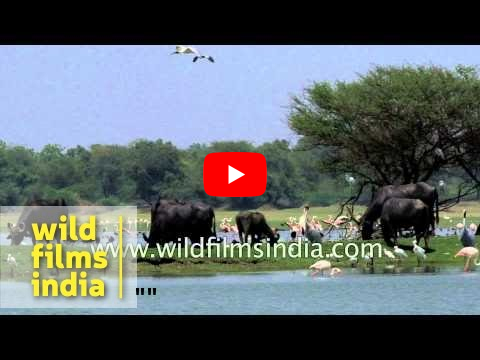 Keywords: greater, flamingoes, black, headed, ibis, thol, lake, gujarat