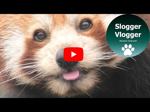 Keywords: SloggerVlogger,#animalvideos,baby red panda,baby animal,red panda,red panda youngster,looking at camera,headshot,amusing,adorable,close-up,cute,eating,closeup