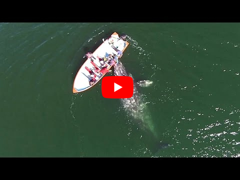 Drone Footage Of Grey Whale Mother And Calf Playing With Tourists view map location